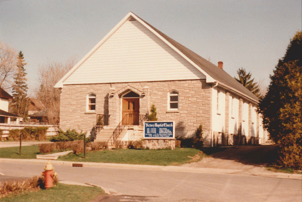 Victory Baptist Church started gathering as a congregation shortly following World War Two in 1946. The congregation met within the confines of a small barracks located in the war time training camp situated in the Newmarket Fair grounds (the curling arena was the camp mess hall). The barracks was then relocated about 400 meters away to the corner of Newton and Arthur. The barracks served the church for a while, until a traditional church structure was built. While at this location, the church in the secluded property, with the church office in the adjacent building on Arthur, there was tremendous growth. Families saw Victory as a great place to worship, and the children often outnumbered the adults.